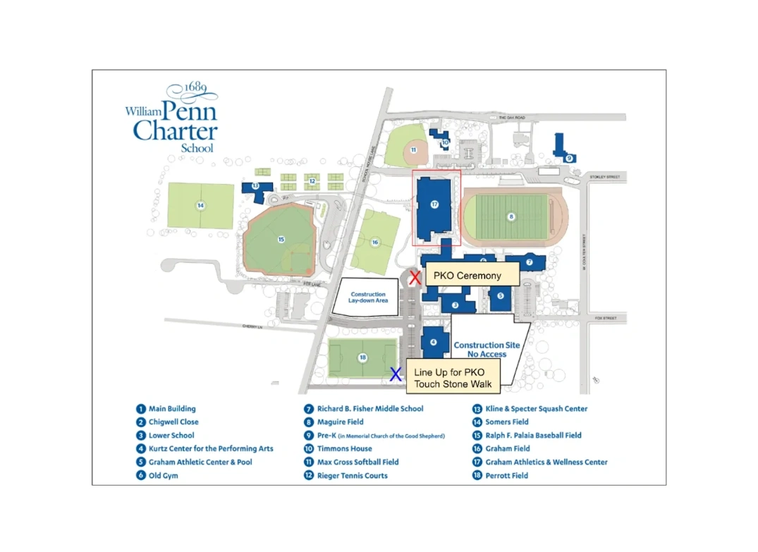 Parking will be tight, so plan accordingly. Penn Charter is building a new Lower School, among major construction projects. Please bear with us!